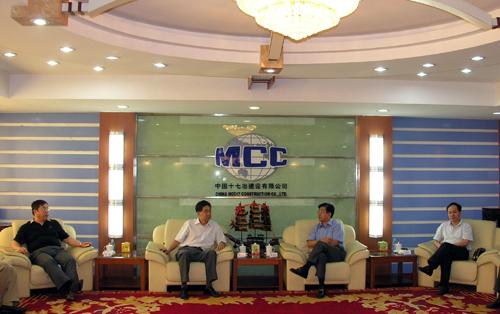 6月23日下午,中国机械设备进出口总公司(CMEC)总裁贾志强、中国机械设备进出口总公司第六事业部总经理尹志新,在马鞍山市副市长郑超陪同下来十七冶访问,十七冶董事长、党委书记康承业在公司总部亲切会见了CMEC总裁贾志强一行,宾主进行了热情、诚挚、友好地会谈。