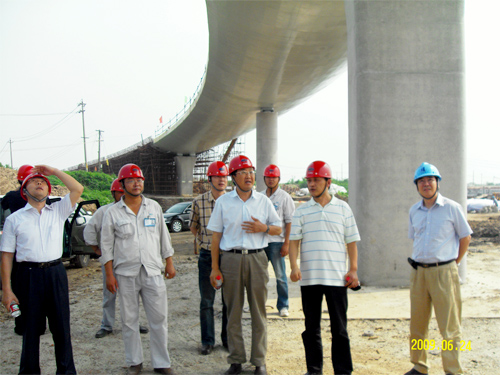 徐学军副厅长、张大春站长认真视察了滨江大道淮河路NE定向匝道桥、下沉式地道、路面二灰碎石等项目的施工,对滨江大道1.1标的工程质量、进度、安全和施工现场的文明施工给予充分肯定,并对本工程提出了结构可靠、节能环保、安装规范、装饰精巧、完善资料等五个方面“确保省优,争创国优”的具体施工目标。
