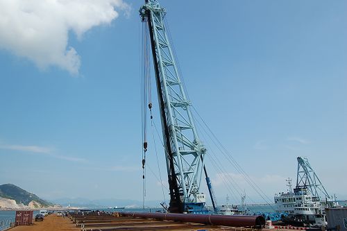 装备制造公司罗洲湾将军帽工程第一根钢管桩打桩成功