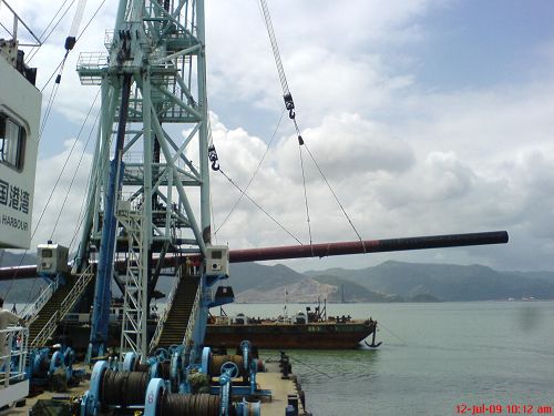 712,罗洲湾港区将军帽作业区一期工程,彩旗飘扬鞭炮齐鸣。历经五个半小时,装备制造公司罗洲湾为将军帽工程生产的直径1.5、长度84、重量67.34吨的第一根钢管桩打桩成功。业主、监理、设计、施工代表约26人参加了打桩仪式。