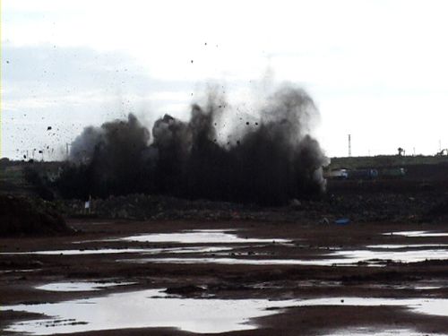 随后康董事长一行观看了四标工程一区现场玄武岩爆破,并就玄武岩爆破情况作了详细的了解。
