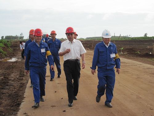 康董事长视察湛江钢铁场地平整四标工程
