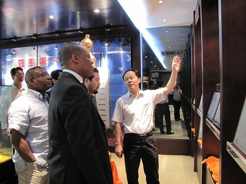 926上午,十七冶副总经理彭毅忠在公司总部亲切会见了来十七冶访问的尼日利亚FIDELITY 银行执行董事EMAKA先生、尼日利亚AVA水泥公司总裁PAUL先生等一行并邀请客人参观了公司荣誉档案展示厅。