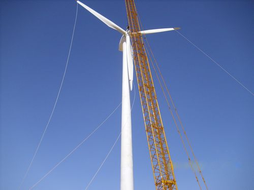 651328分,内蒙古金州百灵庙风电场一期一标段第30780KW风机进行最后一吊,当叶轮与机舱平稳对接后,庆贺的鞭炮顿时在空旷的大草原上炸响,这标志着十七冶风电人在大草原上又树起一座“风”碑。