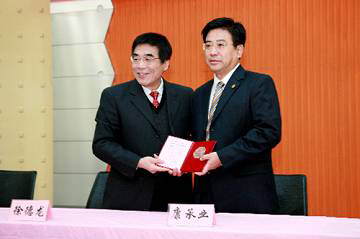 中国工程院院士、西安建筑科技大学校长徐德龙发表了热情洋溢的贺词。徐校长称赞康承业具有厚实的理论功底和丰富的企业管理实践经验,学识渊博、善于创新,能够较好地将管理科学理论运用于企业管理实践,具有很强的企业管控与组织变革能力,受到了一些著名大学教授和学术机构专家的好评,是一位学者型的优秀企业领导。他同时感谢康承业董事长能够接受西安建筑科技大学的聘请。