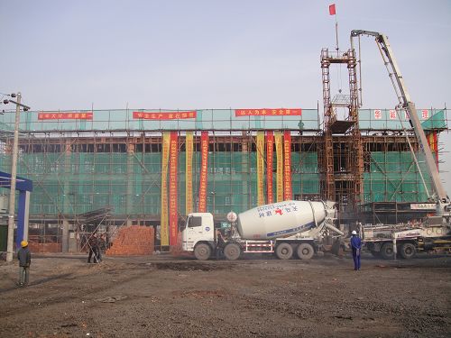 该工程自20091226日正式开工建设以来,项目部周密组织,科学安排,抓住春节前天气晴好的有利时机,掀起了施工热潮。项目部一期工程共完成了202亩建设用地近13立方米的土方外运、场地平整及1000米环形施工道路的铺设和300米施工围墙的砌筑。临时用电全部架设到位,临时用水及污水排放管线已施工完毕,为施工创造了良好的条件。2010120日,1#2#3#楼开始基础施工,争取春节前达到基础出土的形象进度。