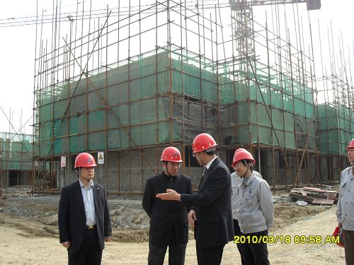 在金安小区项目,康董事长深入施工现场仔细询问工程的进展情况。他首先肯定了金安小区安置房工程在施工质量、安全生产、企业文化建设等方面的总体情况,同时对项目负责人提出五点要求:一是作为国字号企业的项目,一定要树立良好形象;二是要有艰苦奋斗的精神,要有过紧日子的思想;三是要与市里各相关单位关系协调好;四是要把队伍带好;五是把这项关系老百姓切身利益的工程干好,把好事做实。