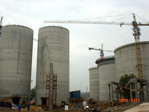 继13号水泥熟料库于64日顺利封顶之后,2号熟料库于78日开始滑模以来,项目部克服了连日来的高温、暴雨等恶劣气候条件的影响, 仅用7天时间便顺利完成2号熟料库滑模工作。另外两座粉煤灰库滑模工作也已顺利完成。全部5座库体的混凝土密实度、垂直度及外观都受到业主和监理的高度评价。