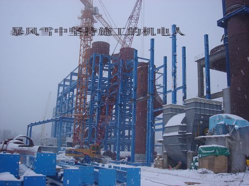 今年俄罗斯的天气是30年不遇的极端天气,刚从10月份雨季脱身的机电人,还没有晾干身上的衣服,气温一下就降到零下20几度。几天之内雪花覆盖了一切,所有的履带吊、汽车、龙门吊、塔吊全部罢工了,整个现场没有一台机械能启动。极端寒冷的俄罗斯冬季,给项目部带来了从未有过的挑战。