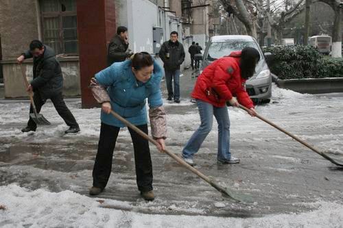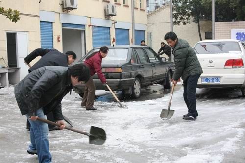 公司出动人力物力铲雪除冰