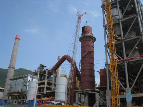 424中午,由十七冶水泥工程公司承建的江西弋阳海螺二期5000t/d水泥熟料生产线增湿塔顺利封顶。