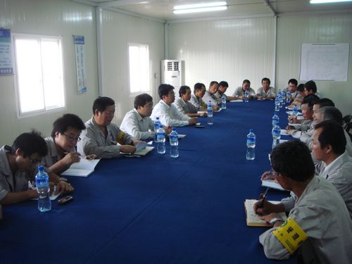 会上,康董事长代表公司对项目部全体员工表示慰问,对质量工作给予了充分的肯定,强调了安全质量工作的重要性,对现场施工进度和文明施工提出了要求。他介绍了公司今年以来的经营形势,要求项目部精心打造企业核心竞争力,积极践行“高效严谨、精细务实”的企业作风,在海外创出十七冶品牌。康董事长的介绍让大家感到精神振奋,对十七冶的发展充满信心。