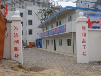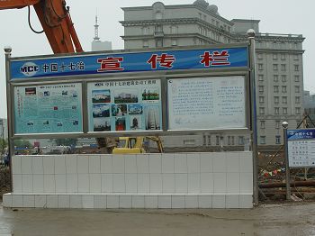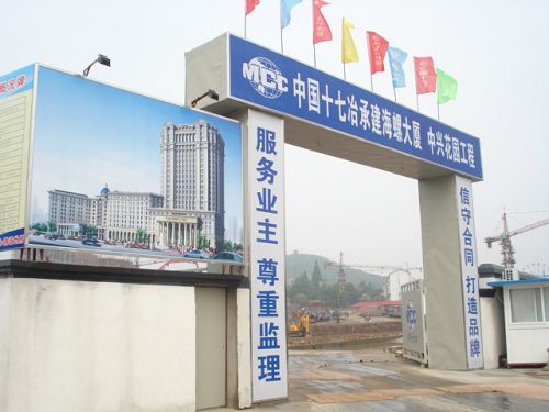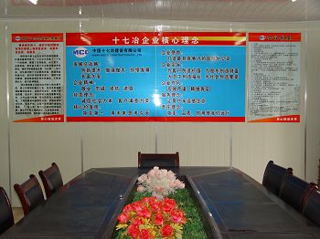 项目部大门楼建设特色鲜明,起点高、企业文化元素体现充分;五牌两图长达16米,高4米,并配制宣传橱窗展示企业业绩,全部实行亮化,很有气势。白天、夜晚成了芜湖市过往行人驻足观摩的焦点,市建委及海螺业主称赞说:“十七冶不愧为国有大企业,办事情、做工程,大手笔,而且规范化,为芜湖施工企业树立了榜样”。