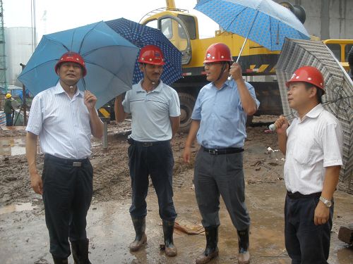 世功副总经理在机电公司经理唐克斌的陪同下,于11日访问完四川达州钢铁股份有限公司后,冒雨赶到达州海螺水泥熟料生产线A标项目部。在达州项目部项目总工王锐和副经理储令华的陪同下,踩着泥泞的施工便道来到施工现场,考察指导工作。水泥工程公司副经理胡文奎就达州海螺等西南地区各项目情况向喻副总经理进行了汇报。世功副总经理详细了解了施工现场的质量、安全和进度等管理情况,对生料均化库工程、窑尾工程的滑模质量给予了肯定,并希望大家再接再厉,把剩下的工程项目做好。