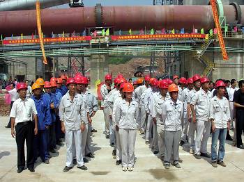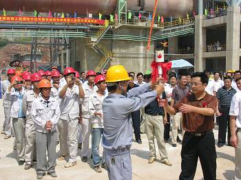 青山环抱下的枞阳海螺工程现场,标语高悬、彩旗猎猎,十七冶人用辛勤劳动建成的四期A线工程犹如一条即将腾飞的巨龙,蔚为壮观。95日上午,“枞阳海螺四期工程点火仪式”在这里隆重举行。