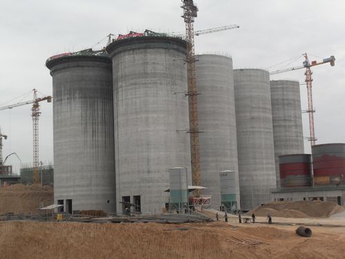 水泥库工程包括12个高54,直径22.5的水泥库,现已完成8座。此8座水泥库自2009126开工以来,项目部克服施工用水和大风沙等不利因素,发扬“高效严谨,精细务实”的企业作风,优化滑模施工方案和安全质量保证措施,采用两库连滑的施工工艺,有效节省施工时间,每两库的滑模时间平均仅用14天时间。与此同时,1#7#库锥体砼也浇注完毕。在质量、进度方面均得到业主及监理公司的好评。