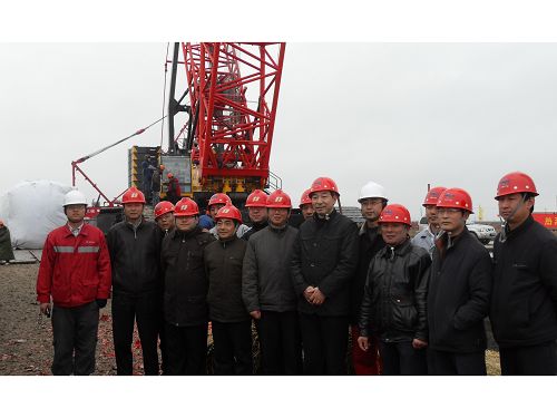 129上午,十七冶风电公司江苏华电灌云风电场工地,举行了首台风机吊装仪式。江苏华电项目公司总经理王武仕,十七冶风电公司经理高胜勇、副经理薛友以及设备制造方领导和项目总监参加了开吊仪式。首次使用的650吨履带吊安装首台2MW风机。