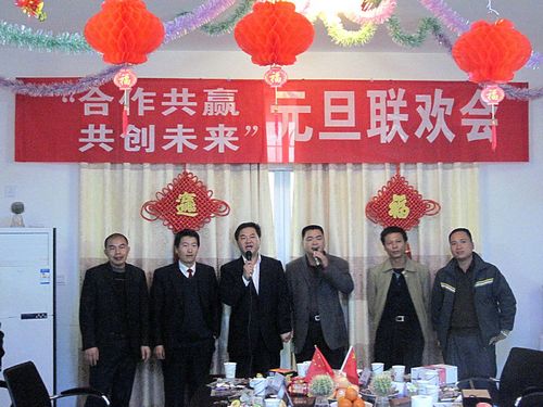 20091231日下午,湛江钢铁工程场地平整项目经理部四楼会议室张灯结彩,火红的灯笼高高挂起,在喜庆的中国结的映衬下,印有“‘合作共赢,共创未来’元旦联欢会”的横幅显得分外耀眼。
