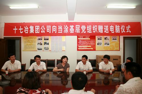 韩伟群部长在仪式上说,十七冶集团党委高度重视与当涂县基层党组织的共建工作,公司董事长、党委书记康承业多次指示我们要搞好结对共建工作,为当涂县结对共建的基层党组织办实事、办好事。这次向当涂县基层党组织赠送的40台从集团公司机关替换下来的电脑,就是尽企业的一份力量,为农村基层党组织开展好创先争优工作提供信息交流的工具,为农村党员进行党内教育工作提供方便。韩伟群还对当涂县委、县政府多年来一贯支持和关注中国十七冶集团的发展表示衷心的感谢和崇高的敬意。