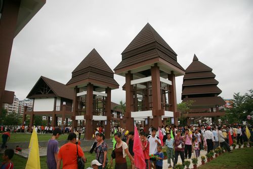 七仙文化广场上,七座颇具热带风情的亭台吸引了大批的游人,亭台中,人们或停歇,或赏园,或观景,孩童嬉水,老人言谈,这就是海南分公司保亭项目部全力打造的又一精品——七仙观景亭(台)。