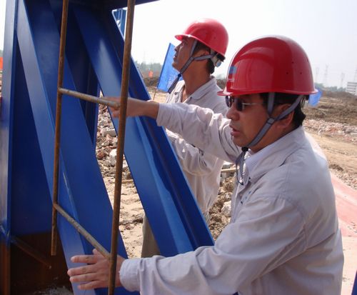 康董事长一行仔细地察看了工程的土建基础、钢结构制作安装现场,并针对工程实际情况,对现场文明施工、安全质量管理、进度控制以及沟通和协调等提出具体要求。