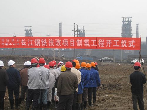十七冶在该工程中主要承担土建施工任务。长江钢铁技改项目部年前就把计划安排,人员组织,材料机具进场等各类生产要素一一组织落实到位,从而确保了制氧工程的按期开工。