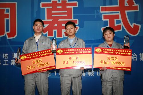 1022,经过2天紧张、激烈、有序的比赛,中冶集团第三届职业技能竞赛“中国十七冶杯”电气设备安装工决赛落下帷幕。中国十七冶集团代表队荣获团体第一名,队中选手吕冬杰、王晓彬、陈鹏分获个人前三名,同时荣获“全国技术能手”荣誉称号。