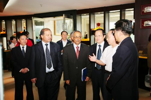 康承业董事长陪同贵宾们参观了公司荣誉室,向客人介绍了十七冶的发展简史、取得的荣誉和经营业绩。客人们饶有兴致地边走边看,纷纷啧啧称赞。