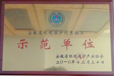 公司获“安徽省环境保护优秀施工示范单位”称号