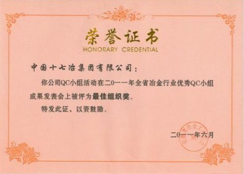 日前,安徽省冶金工业协会QC小组成果发布会上获悉,公司荣获2011年省冶金行业优秀QC小组活动最佳组织奖”。