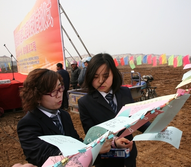 34下午,全市共青团服务重点工程建设工作启动仪式在我公司金福花园安置房项目建设工地现场隆重举行。