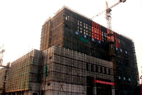 结构封顶后,特警项目进入了全面的内外装修阶段。目前,整个外墙干挂正在加紧施工。预计,春节前外脚手架将全部落地。