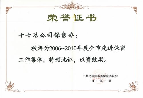 近日,从马鞍山市保密工作表彰会上获悉,公司保密办被评为2006—2010年度全市先进保密工作集体。