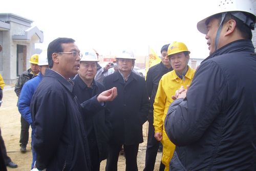 31日上午,河南驻马店市委书记马正跃、泌阳县委书记谢凤鸣、县长高万象等一行在华润新能源有限公司河南片区风电建设指挥长胡晓利、泌阳风电场项目指挥长祝尚礼陪同下,来到十七冶风力与太阳能工程技术公司承建的泌阳风电场升压站工程施工现场视察。