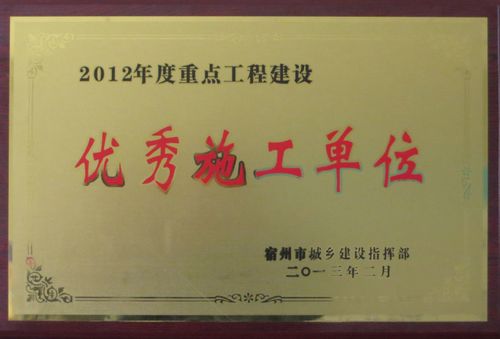 35日,十七冶城建工程技术公司宿马项目部荣获2012年度安徽省宿州市重点工程建设“优秀施工单位”荣誉称号。