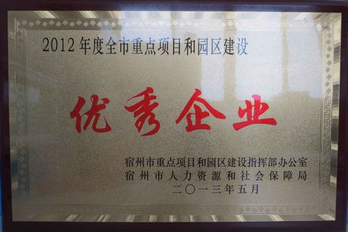 日前,在宿州市召开的2012年度重点项目和园区建设表彰会上,宿马中冶建设发展有限公司荣获“2012年度全市重点项目和园区建设优秀企业”称号。