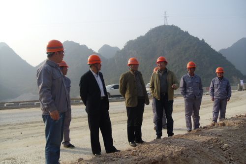 喻世功董事长一行深入施工现场,细致查看了项目路面水稳摊铺作业及拌和站的建设生产情况,在仔细听取了工程项目安全管理、工程质量和施工进度等情况的汇报后,对项目各项管理工作给予了充分的肯定。