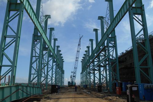 在炼钢项目区域,侯安贵副总经理一行仔细听取并查看了炼钢项目厂房钢结构吊装进程和铁水倒灌坑土建施工情况。十七冶炼钢工程项目经理部高度重视钢结构吊装工作,针对湛江的雷雨、强台风气候对钢结构安装造成的很大影响,把“防风、防台、防雷”作为安装过程中的控制重点,制定了安全专项方案,并围绕转炉节点进行调整,确保工程土建、钢结构、混凝土质量和工期节点施工进程。检查中,宝钢领导对十七冶承建的宝钢湛江炼钢项目的安全、质量等方面工作给予了充分肯定。