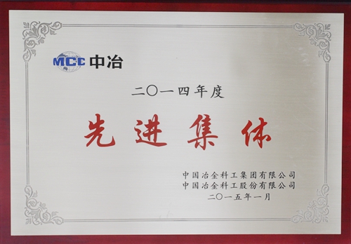 公司荣获2014年度中冶集团先进集体称号