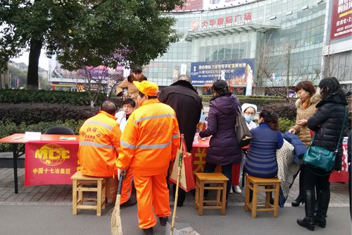 8日上午,在市中心大华国际广场,虽然天气十分寒冷,十七冶医院的医护人员却能以饱满的热情为每一位市民做细致检查与咨询。活动中,几位正在工作的环卫工人前来就诊,其中有两位师傅需要到医院做进一步检查,消化内科医生王小东里外张罗,将两位环卫师傅的后续诊疗服务安排得妥妥当当。