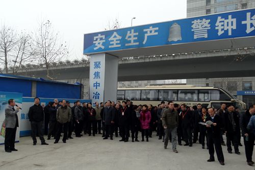 观摩之前,代表们听取了鼓楼滨江开发区领导对该项目工程概况、工期进展的介绍。进入项目部后,长航项目部负责人陪同代表们参观施工现场,并就项目部在克服场地狭小、加强安全质量控制和标化示范工地建设、保证工期措施等方面的工作向代表们做了简要介绍。代表们对十七冶南京长航项目部在企业外化宣传、施工现场文明施工和绿色施工、扬尘控制等方面做出的成绩表示赞许。代表们在得知1#和4#楼将于12月28日前封顶,实现承诺目标时,更是对十七冶的央企实力给予了高度评价。