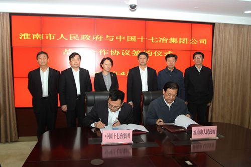 4月6日下午,中国十七冶集团与淮南市政府在淮南市政务中心签订战略合作协议。淮南市市长王宏,中国十七冶集团董事长喻世功、总经理刘安义等领导出席仪式并见证签约。淮南市委常委、常务副市长袁方和中国十七冶集团副总经理陈阳分别代表双方在合作协议上签字。战略合作协议签署前,宾主双方进行了友好的会谈。