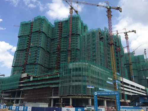 马来西亚碧桂园金海湾项目位于马来西亚柔佛州新山市DANGA BAY中心腹地,与新加坡隔海相望,超大规模建筑综合体内涵盖商业购物、高档住宅等建筑,建成后将成为新山市最大最高档的商住综合服务社区。中国十七冶集团房屋工程技术公司承建的马来西亚碧桂园金海湾PLOT3项目由BLOK3D 和BLOK3F 塔楼及相应的联体低层裙房的主体结构及装饰装修组成。裙楼为6层,底部两层为商铺,其他楼层为车库转换层,上部为绿化层。上部标准层每层3.3m,层数分别为BLOK 3D-1(22 层)、BLOK3D -2(24 层)、BLOK 3F-1(15 层)、BLOK 3F-2(13 层)、BLOK 3F-3(9 层)。占地面积16000平方米,建筑总面积170000平方米。
