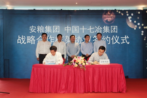 5月5日下午,中国十七冶集团与安徽省粮油食品进出口(集团)公司战略合作框架协议签约仪式在黄山太平湖国际旅游度假区项目举行。安粮集团董事长、党委书记陈焱华,党委副书记、纪委书记、安徽安粮置地有限公司董事长孙毅,安徽安粮置地有限公司副董事长、总经理刘宇;中国十七冶集团董事长、党委书记喻世功,总工程师、副总经理尹万云,总经理助理、中冶置业(安徽)公司总经理唐克斌出席了签约仪式。孙毅副书记和尹万云总工程师分别代表合作双方在协议上签字。