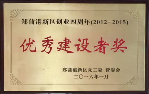 公司获市郑蒲港新区“优秀建设者奖”称号