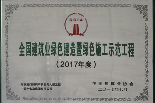 8月21日,中国十七冶集团有限公司江苏分公司从中国建筑业协会捧回浦口知识产权服务大厦项目“2017年度全国建筑业绿色建造暨绿色施工示范工程”奖牌。