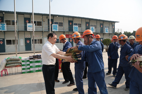 近日,中国十七冶集团纪委书记、副总经理蔡进到宿州区域的房屋公司、城建公司、路桥公司、南京分公司、置业公司项目开展调研及“送清凉”慰问活动,为炎炎夏日坚守一线的员工,送上茶叶、白糖、绿豆等消暑用品,为项目员工送去了丝丝清凉,送去了公司的关爱。