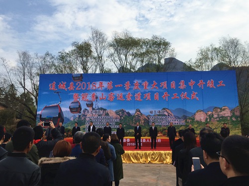 1月4日,由福建连城县人民政府主办的“连城县2018年一季度重大项目集中开竣工暨冠豸山客运索道开工仪式”在冠豸山风景名胜区竹安寨景区举行,中国十七冶集团有限公司冶金工程技术分公司承建的连城县冠豸山客运索道项目开工。福建省旅游集团党委副书记、总经理刘洪建,连城县委书记钟勇强分别致辞祝贺,省旅游集团党委书记、董事长陈扬标宣布连城冠豸山客运索道项目正式开工。仪式由连城县委副书记、县长吕素梅主持。