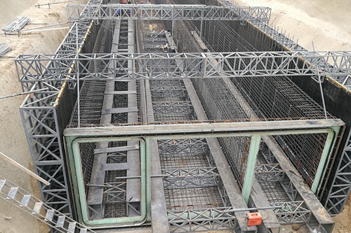 日前,公司在目前全国规模最大的西安城市地下综合管廊柳新路段采用定型化钢模工艺施工完成,这是定型化钢膜在继单舱缆线廊应用之后在多仓室综合管廊施工中的首次成功应用。钢模工艺施工速度是传统木模板施工效率1.5倍以上,且周转次数多达200多次,而木模板一般周转仅有4次。定型化钢模板块制作精度高,拼缝严密,成型质量效果好。从工程质量方面来说,具有抗渗特点,避免了使用木模板出现过多的穿墙螺栓,减少渗漏隐患;成功解决了预埋件及预埋槽的安装精度质量问题,同时管廊实体外观上更光滑平整。