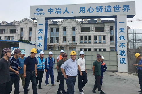 8月1日上午,南京市江北新区管委会副主任诸渊深一行来中国十七冶集团江苏分公司承建的定向河小学项目调研。